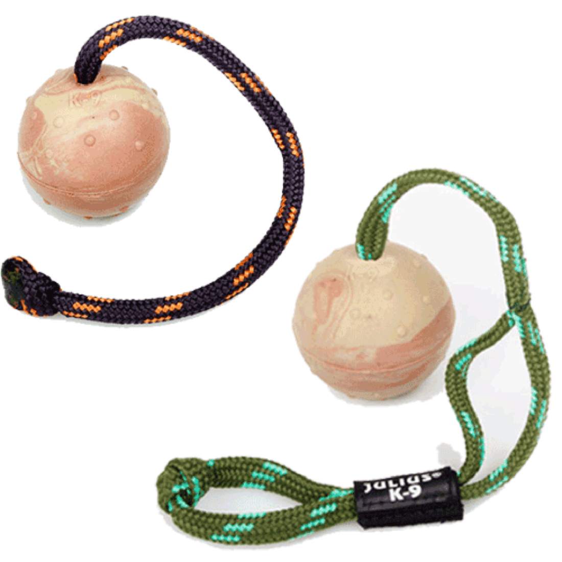 Balle Julius-K9 en caoutchouc avec corde et nœud ou poignée
