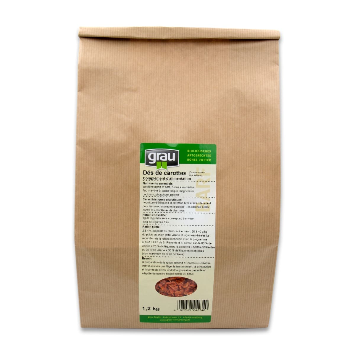 Nos dés de carottes naturels GRAU sont sans céréales et sans gluten est idéale pour le barfing ou le mélange avec des aliments secs et humides. La carotte contient de la bêta-carotène (pro-vitamine A), un composé bénéfique aux yeux et au pelage des chiens.