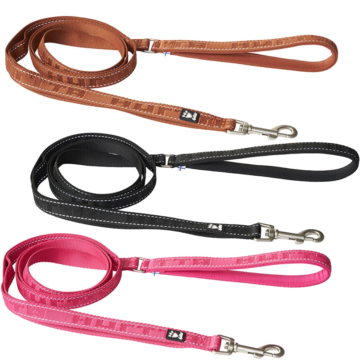 Fabriquée dans un matériau en polyester 100% recyclé solide et durable sélectionné avec soin par la marque finlandaise Hurtta, cette laisse offre une visibilité optimisée grâce aux éléments réfléchissants 3M intégrés dans les coutures, et ses deux poignées permettant un meilleur contrôle du chien quand il marche au pied.
