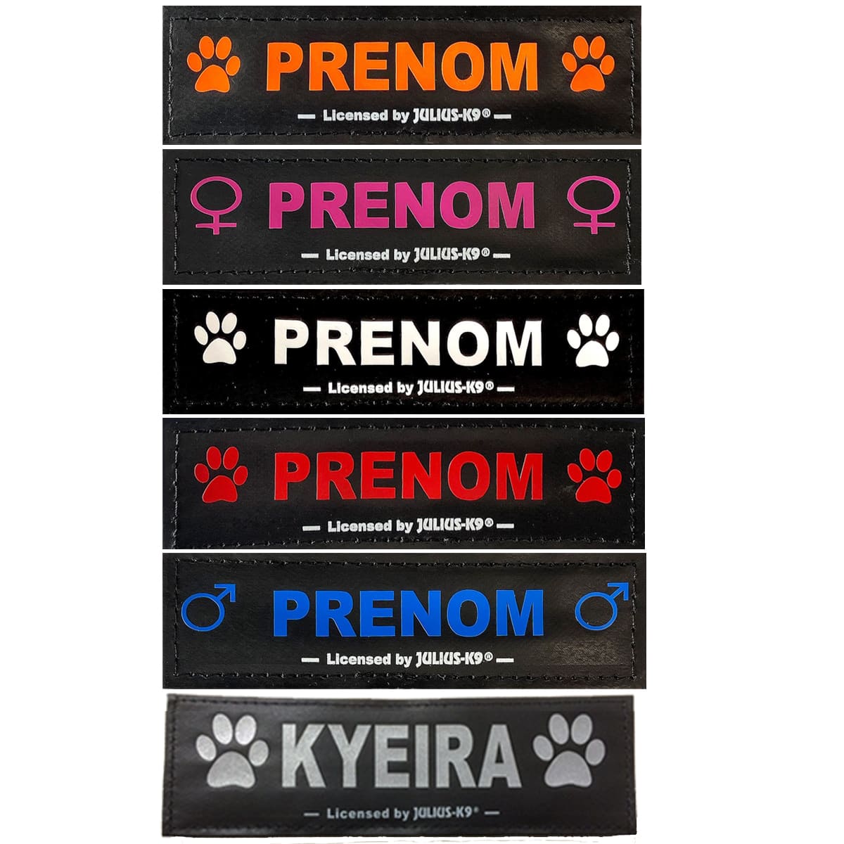 Möchten Sie Halsband, Jacke, Mantel oder Ihr Julius-K9 Geschirr auf originelle Weise personalisieren? Personalisieren Sie es mit dem Namen Ihres Hundes mit diesem Julius-K9® Klettlogo! Jeder schwarze Aufnäher ist einfarbig, trägt unten am Logo die Aufschrift „Licensed by Julius-K9“ und ist auf der Rückseite mit Klett versehen. Ihr Text erscheint in nicht-phosphoreszierenden, nicht leuchtenden weißen oder farbigen Buchstaben. Die Farbe „Reflektierendes Grau“ wird für optimale Sichtbarkeit empfohlen: Die Buchstaben sind grau und reflektieren Scheinwerferlicht und andere Lichtquellen. Achtung: Die anderen Farben sind nicht reflektierend.