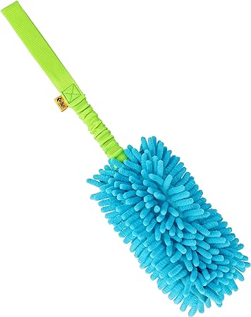 Le jouet à tirer élastique est fabriqué à la main en matériau serpillère avec franges. Le jouet microfibre pour chien avec une poignée élastique